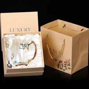蝴蝶菊蓝高单杯+勺盖盘礼盒装
