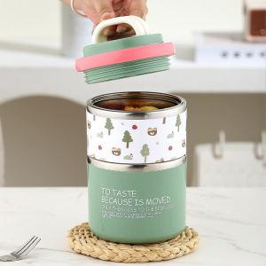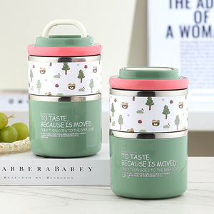 自产不锈钢饭盒双层保温便当盒便携午餐盒幸运草小提锅Lunch box