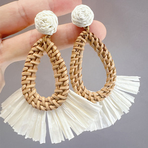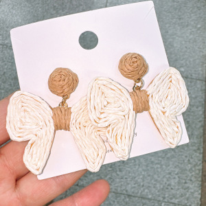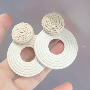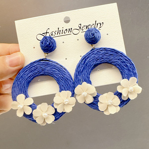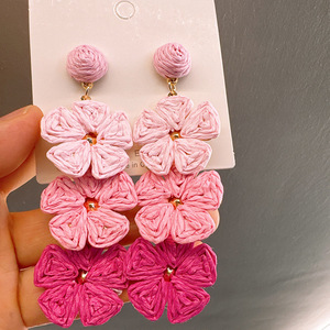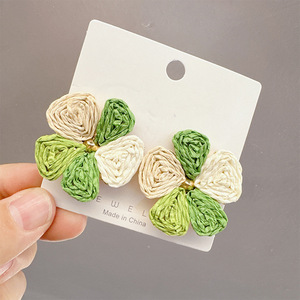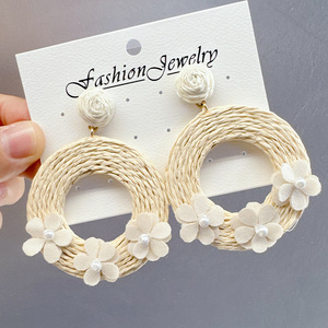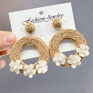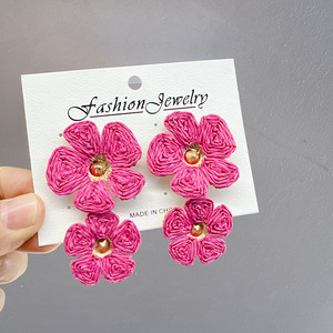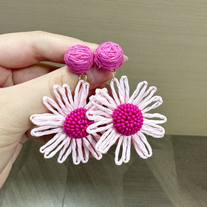 波西米亚风夸张独特手工草编花朵耳钉海边度假风超仙百搭气质配饰