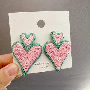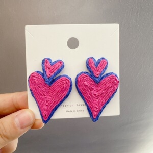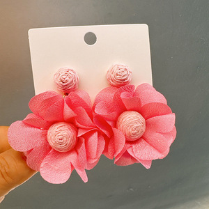 ins风甜美玫红编织镂空圆形花朵耳钉