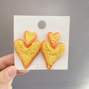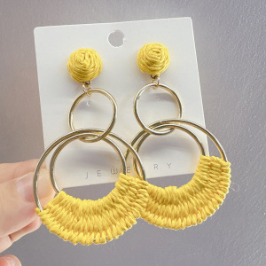 ins风甜美黄色编织镂空圆形花朵耳钉