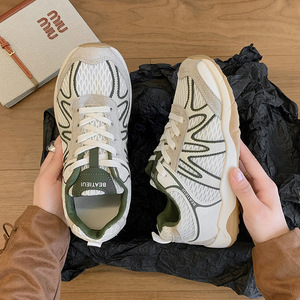 复古软皮厚底阿甘鞋女2025夏季新款网面透气运动鞋轻便休闲德训鞋