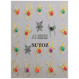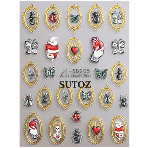 クロスボーダーホットエンボスネイルアートステッカーレトロスタイル額縁立体昆虫クモてんとう虫ゴースト5D粘着ステッカー