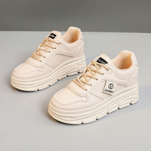 W3675新款小白鞋2024夏秋季纯色内增高厚底耐磨学生百搭透气板鞋