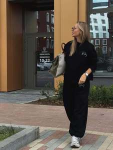 女性のためのラウンドネックスウェットシャツスーツ秋カジュアルスポーツスタイル快適なシンプルなレタープリントツーピースルーズパンツ秋