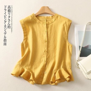 2025夏季新款T恤吊带背心棉麻无袖上衣女荷叶下摆单排扣衬衫好看
