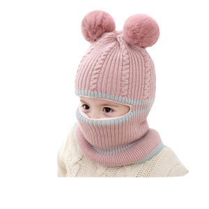 儿童帽子秋冬潮男宝宝加绒加厚针织毛线帽女童护脸护耳围脖一体帽