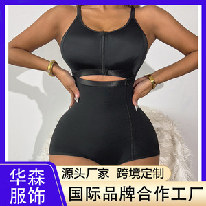 新款跨境temuTK外贸塑身连体衣带胸杯款分体侧拉链设计收腰提臀束