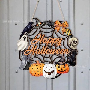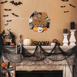 Amazonクロスボーダーホットスタイルハロウィンスカルゴーストガーランド木製ドアサイン木製ホームデコレーションペンダント