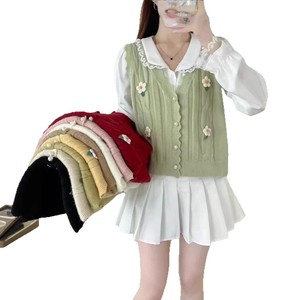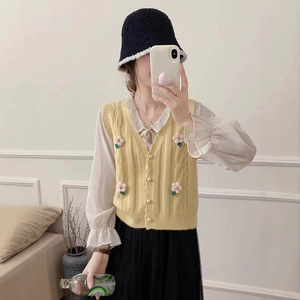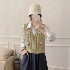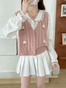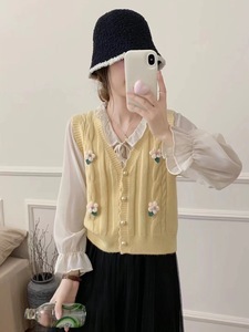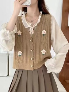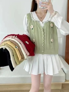 甜美花朵针织马甲开衫女2025秋冬新款韩版小清新坎肩毛衣背心外搭
