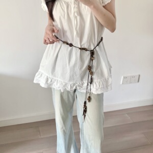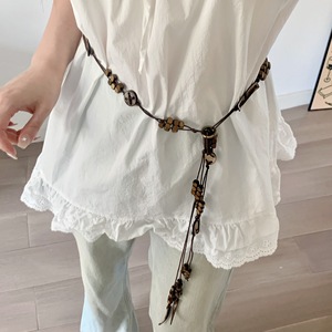 民族风方形木珠蜡绳椰壳串珠腰链设计感小众腰带时尚百搭腰饰饰品