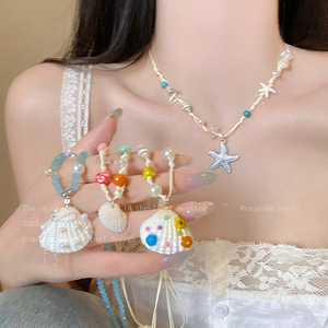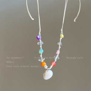 海辺ドーパミンカラーシェルビーズネックレス女性のための 2025 新しいハイエンドライト高級ネックレスホリデースタイルアクセサリー