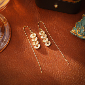 中国风五帝钱锆石耳环招财气质长款流苏耳饰新中式高级感时尚耳线