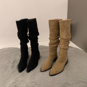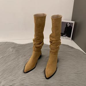 ハイヒールマーティンブーツフレンチパイルブーツ女性の人気のウエスタンカウボーイブーツ2025夏と秋のレトロブーツ