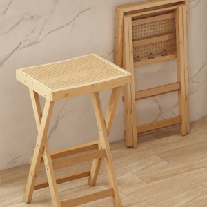 新免安装折叠高脚凳吧台椅现代简约酒吧椅收银前台吧椅天然楠竹木