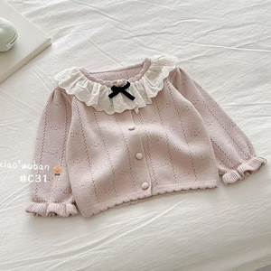 开衫毛衣女童春季薄款外套洋气儿童毛衣针织长袖内穿宝宝春天衣服