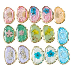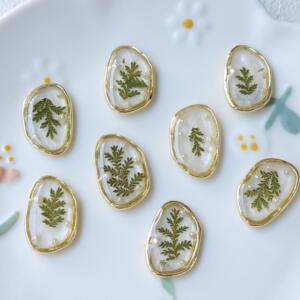 ins法式椭圆珍珠干花绿叶滴胶头饰边夹发圈洞洞鞋合金diy饰品配件