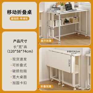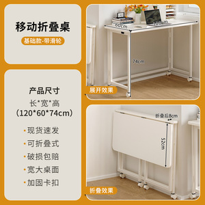 折叠可移动【单桌】白色120x60滑轮可拆卸♜⚑