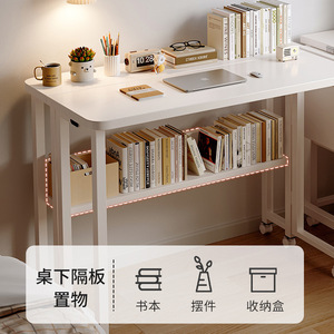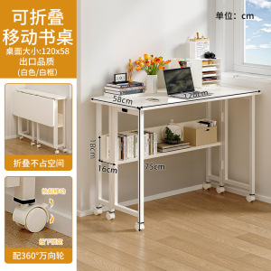折叠可移动【单桌+置物架】白色120x58滑轮可拆卸♜⚑