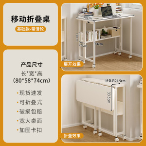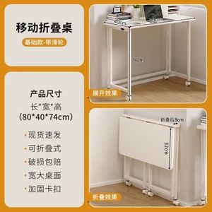 折叠可移动【单桌】白色80x40滑轮可拆卸♜⚑