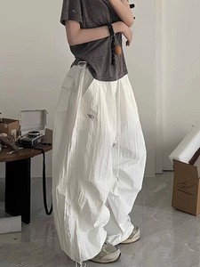 美式高街降落伞工装裤女抽绳宽松皱褶阔腿裤子休闲爵士跳舞运动裤