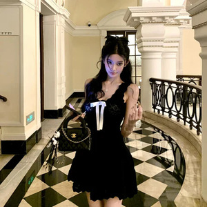 2025新款白月光温柔气质背心连衣裙女装夏季纯欲风蝴蝶结显瘦短裙