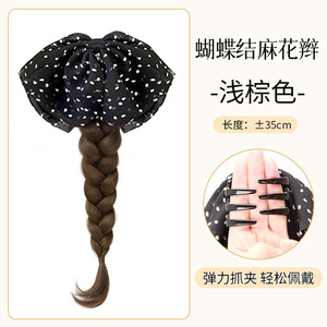 ウィッグ三つ編みポニーテール女性用クリップイン人工毛ローポニーテールナチュラルで爽やかな三つ編み水玉模様のリボンロング三つ編み