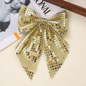 新款方格亮片双层蝴蝶结大号飘带发夹跨境发饰批发后脑勺弹簧夹