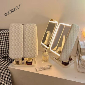 LED化妆镜子台式带灯三面折叠放大网红宿舍桌面美妆卧室梳妆镜子