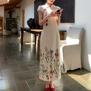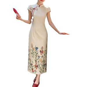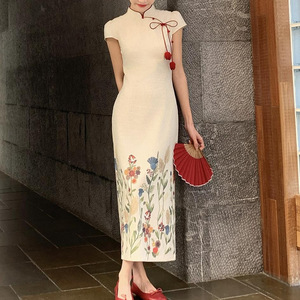 2025年 新中式印花旗袍女夏季气质修身显瘦 送郁金香红头绳连衣裙