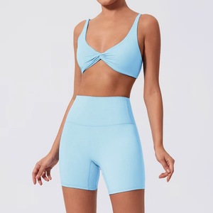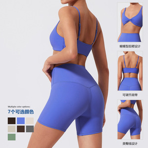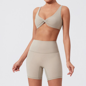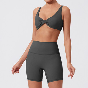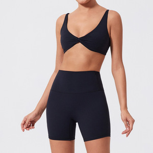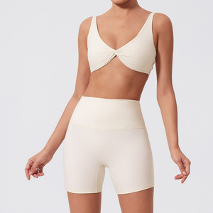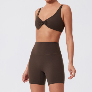 熙伽跨境高腰提臀紧身扭结文胸外穿弹力蜜桃运动感瑜伽套装TZ828