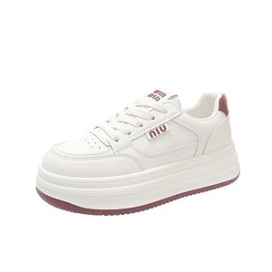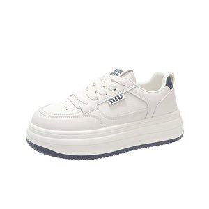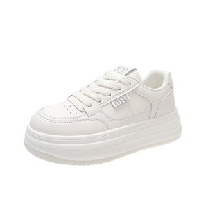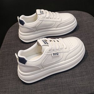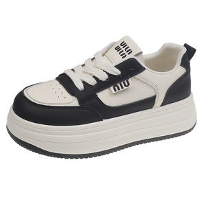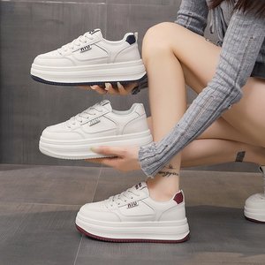2025春秋新款韩版皮面运动鞋女厚底板鞋跑步鞋女ins透气单鞋B309