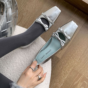 本革インナー高さスクエアトゥリボン浅口シングルシューズ女性用秋冬新作ミッドヒールファッショナブルで多用途な女性用シューズ