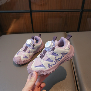 儿童鞋透气运动鞋旋钮休闲跑步鞋2025春秋新款男童女童透气老爹鞋