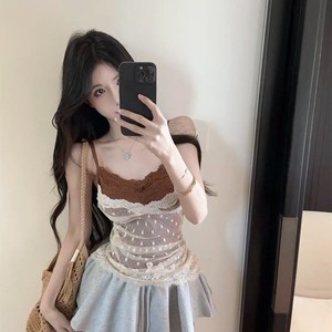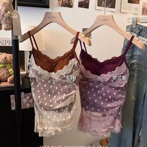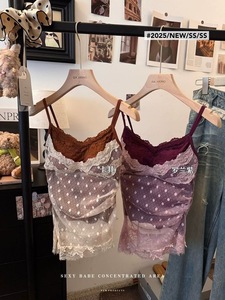 L3327#法式气质设计感纯欲波点蕾丝外穿无袖女夏季辣妹吊带背心