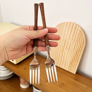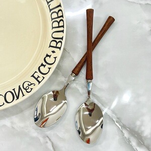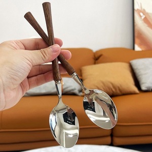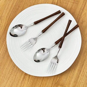 跨境鸡翅木木柄不锈钢勺子刀叉勺实木手柄木把家用吃饭成人用汤匙