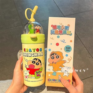 クレヨンしんちゃん かわいいシューティング魔法瓶カップ ストロー 高価値ウォーターカップ 学生ポータブル 大容量 ガールズオフィスカップ