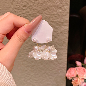 女性用フレンチレトロな白い花びらパールイヤリング、軽い豪華さ、ハイエンド、エレガントで多用途なイヤリング、イヤリング卸売