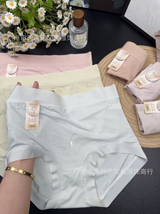 蝴蝶花纯色大码高腰夏季冰丝女士内裤桑蚕丝抗菌底档三角裤衩#02
