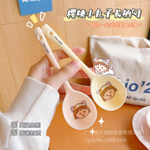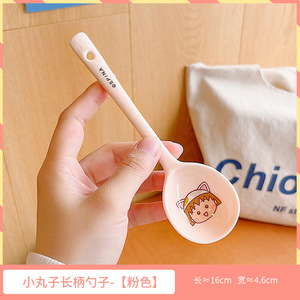 樱桃小丸子陶瓷勺子汤勺餐具家用2025新款高颜值长柄勺汤匙调羹
