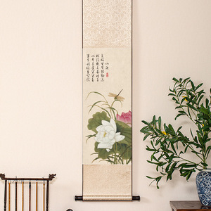 清平雅輝絵絹布ライスペーパー巻物掛け絵