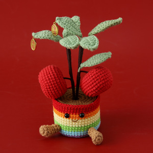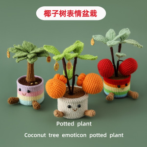 完成品手編みグラデーションカラー鉢植えシェフィールド糸かぎ針編みココナッツツリー表現鉢植えバレンタインデーウールかぎ針編み
