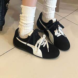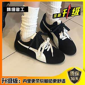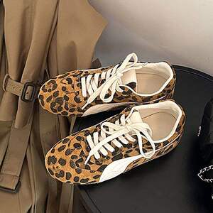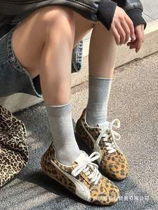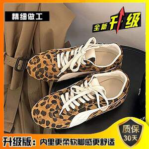 ~豹纹复古德训鞋女2025新平底系带单鞋百搭休闲运动鞋