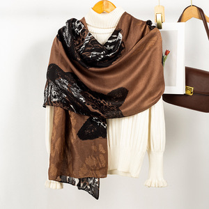 跨境动物虎头印花披肩长巾 旅游度假防晒丝巾装饰围巾潮厂家批发
