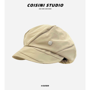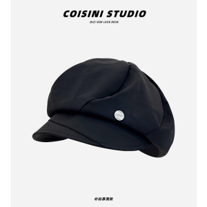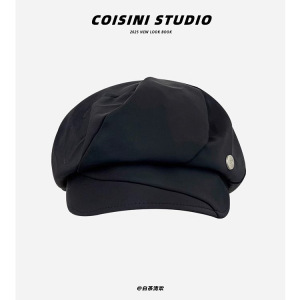 日本製ソフトトッププリーツブラックベレー帽レディース春夏カジュアル万能クラウド八角形帽子頭囲が大きいと顔が小さくなります