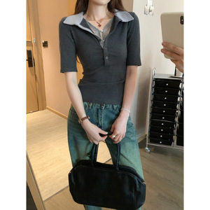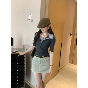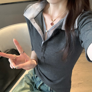欧货设计感假两件蕾丝拼接polo领短袖T恤女2025夏新款酷辣上衣女