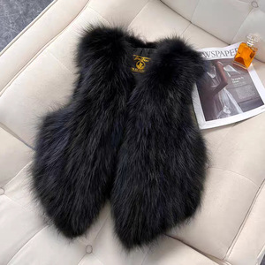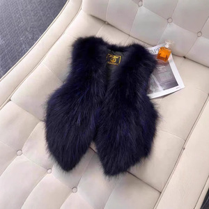 狐狸毛马夹真皮草女士短款显瘦貉子毛背心坎肩秋冬小马甲轻奢蓝