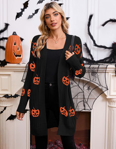 外国貿易クロスボーダー新しいヨーロッパとアメリカのセーター女性のためのアマゾンハロウィンパンプキンヘッドジャカードニットカーディガンジャケットセーター