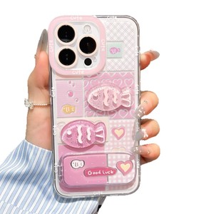 清新立体可爱小鱼适用苹果16promax保护套镜面支架iphone15手机壳