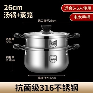 304 【家庭用蒸しモデル】26CM+蒸し焼き網 ダブルハンドルで持ち運び簡単
